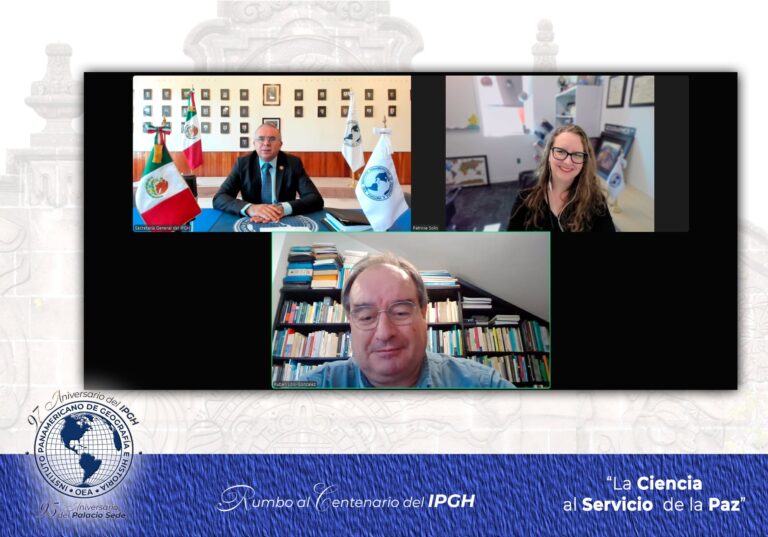 Mr. Antonio Campuzano Rosales, Secretary General of the Pan American Institute of Geography and History (PAIGH), held a virtual meeting with Dr. Patricia Solís, President of the Institute, and Dr. Rubén C. Lois González, President of the International Geographical Union (IGU).