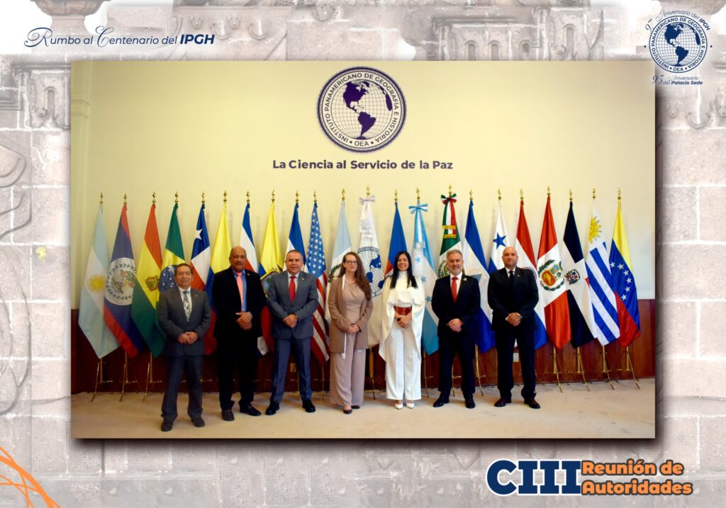 Del 8 al 10 de julio de 2025 se llevaron a cabo los trabajos de la CIII Reunión de Autoridades del Instituto Panamericano de Geografía e Historia (IPGH) en la Ciudad de México. Estas reuniones se realizan dos veces al año para revisar las áreas científica, financiera y administrativa, así como para coordinar, supervisar, analizar y aprobar los programas de Asistencia Técnica y Publicaciones del organismo.
