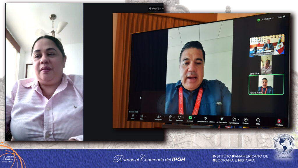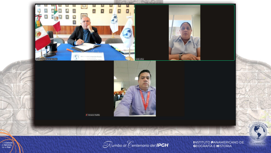 El Mtro. Antonio Campuzano Rosales, Secretario General del IPGH, se reunió de manera remota con la Ing. Leidy Ulloa, Presidenta de la Sección Nacional del Instituto Panamericano de Geografía e Historia en Honduras y el Ing. Horacio Ezequiel Padilla, Coordinador de Geografía de la Dirección General de Cartografía y Geografía del Instituto de la Propiedad de dicho país.