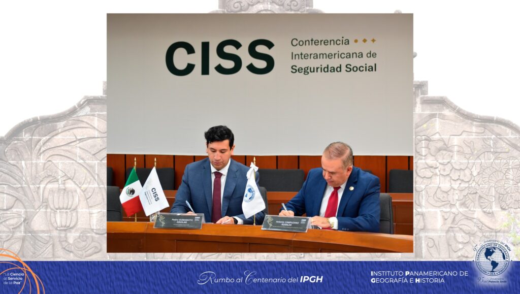El Instituto Panamericano de Geografía e Historia (IPGH) y la Conferencia Interamericana de Seguridad Social (CISS) consolidaron una alianza estratégica mediante la firma de un memorando de entendimiento, realizada en las instalaciones de la CISS.